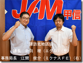 JAM甲信諏訪北地区協議会、諏訪南地区協議会は2024年1月20日(土)にRAKO華乃井ホテルにて「2024年 諏訪南北地区協合同新春旗開き」を合同で開催した。諏訪北地区協8単組、諏訪南地区協12単組と来賓を含め84名が集まった。今年度の開催は2019年以来の対面での合同旗開きの開催となった。