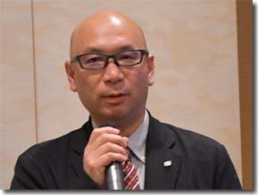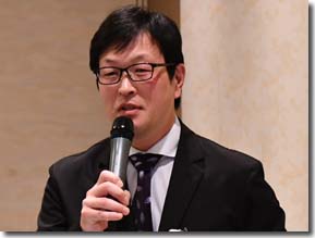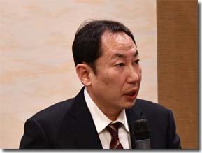 冒頭の挨拶を行なうM代表幹事 講演に熱心に耳を傾ける参加者