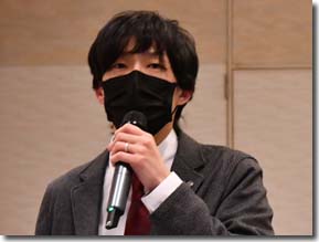 質問をする参加者 御礼の挨拶を行う鞄s筑製作所大久保部長