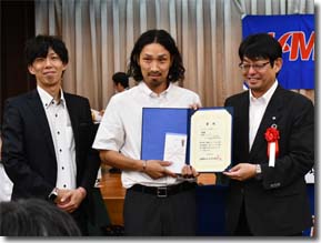 質問をする代議員 表彰を受ける杉原委員長(左)櫻井書記長(右)