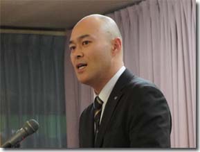 JAM甲信の紹介をする小林組織部長 参加した地区協幹事で