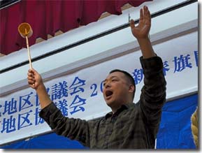 冒頭、諏訪南地区協の牛山議長は「今年もこの旗開きを皮切りに活動が始まる。組合執行部は『対話と行動』が必要である。労働条件・福祉共済・政策制度実現の三本柱の取り組みをしっかりと行って頂きたい。また、今年は現在取り組み中の参議院選挙の年である。畑を耕してきた学習会のTANA会を実施してきた。全単組役員が、種をまき、田中ひさや氏必勝という花を咲かせるために、より一層の協力をお願したい。」と挨拶した。