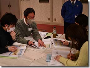 講義に耳を傾ける参加者 グループワークを行う参加者
