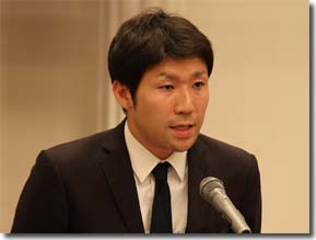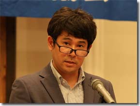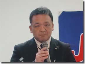 JAM甲信の紹介をする小林組織部長 参加した地区協幹事で