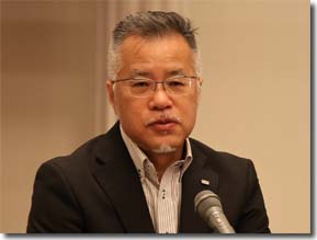 挨拶をする岩崎議長 挨拶をする猪俣副執行委員長