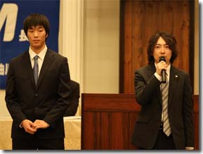 思い出を語るOBの高見沢さん OBの相川さんよりエール
