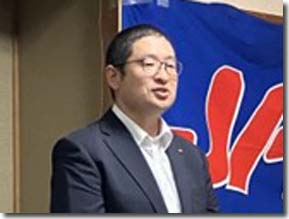 冒頭、諏訪南地区協の牛山議長は「今年もこの旗開きを皮切りに活動が始まる。組合執行部は『対話と行動』が必要である。労働条件・福祉共済・政策制度実現の三本柱の取り組みをしっかりと行って頂きたい。また、今年は現在取り組み中の参議院選挙の年である。畑を耕してきた学習会のTANA会を実施してきた。全単組役員が、種をまき、田中ひさや氏必勝という花を咲かせるために、より一層の協力をお願したい。」と挨拶した。
