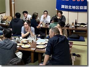 会議終了後には賑やかな懇親会が催され、参加者同士の交流を深めることができた。各単組では役員の交代もあり、初めて顔を合わせる方もいる中で、地区協活動の重要性を共有し、諏訪北地区協の2026年度が力強くスタートした。
