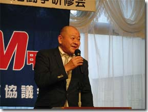 牛山副委員長より連帯の挨拶 組織力の強化を語る齊藤議長
