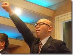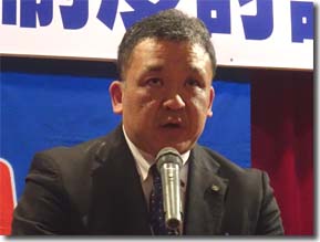 就任の挨拶を行う濵新執行委員長 団結ガンバロー!!